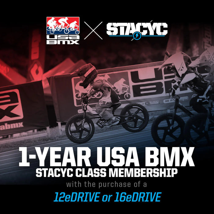 The STACYC 12eDRIVE is the perfect choice for little rippers with little or no experience on a balance bike. Your child should have an inseam of 14” or more to adequately touch the ground with a slight bend in the knees for optimum sizing. Your child can learn to push, balance, and coast in the Non-powered mode. Graduate them to the powered mode (the holy grail of fun) as they show proficient use and understanding of the brake and the ability to coast and brake while standing. Start them with a speed similar to what they can push the non-powered version at, and they learn the use of the twist throttle, and a long coast turn into a constant use of throttle and giggles. As they continue to develop skills, the medium speed of the STACYC 12eDRIVE allows for an exceptional amount of fun outdoors, getting thousands of hours of hand-eye coordination, balance, and outdoor exercise.