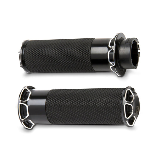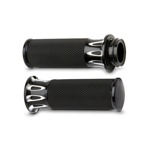 ARLEN NESSDeep Cut® style billet grips with a slightly larger diameter than factory and air cushion type rubber for increased comfort with less hand fatigue...