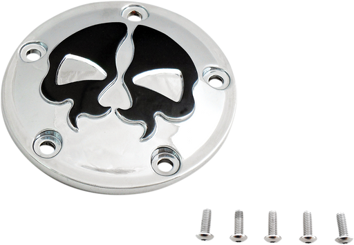 Points Cover - Chrome - Black Skull - 5 Hole - Twin Cam